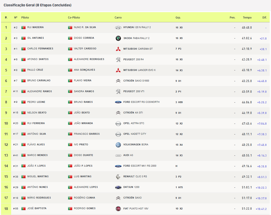 A forma como a dupla foi gerindo a prova, aliando rapidez, eficácia e inteligência estratégica, permitiu transformar a liderança conquistada no sábado numa vitória robusta e sem contestação no final do rali, naquele que foi um dos desempenhos mais dominadores de Rui Madeira nesta prova.